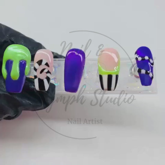 - Beetlejuice inspired print: Hand painted art all done in gel & builder gel