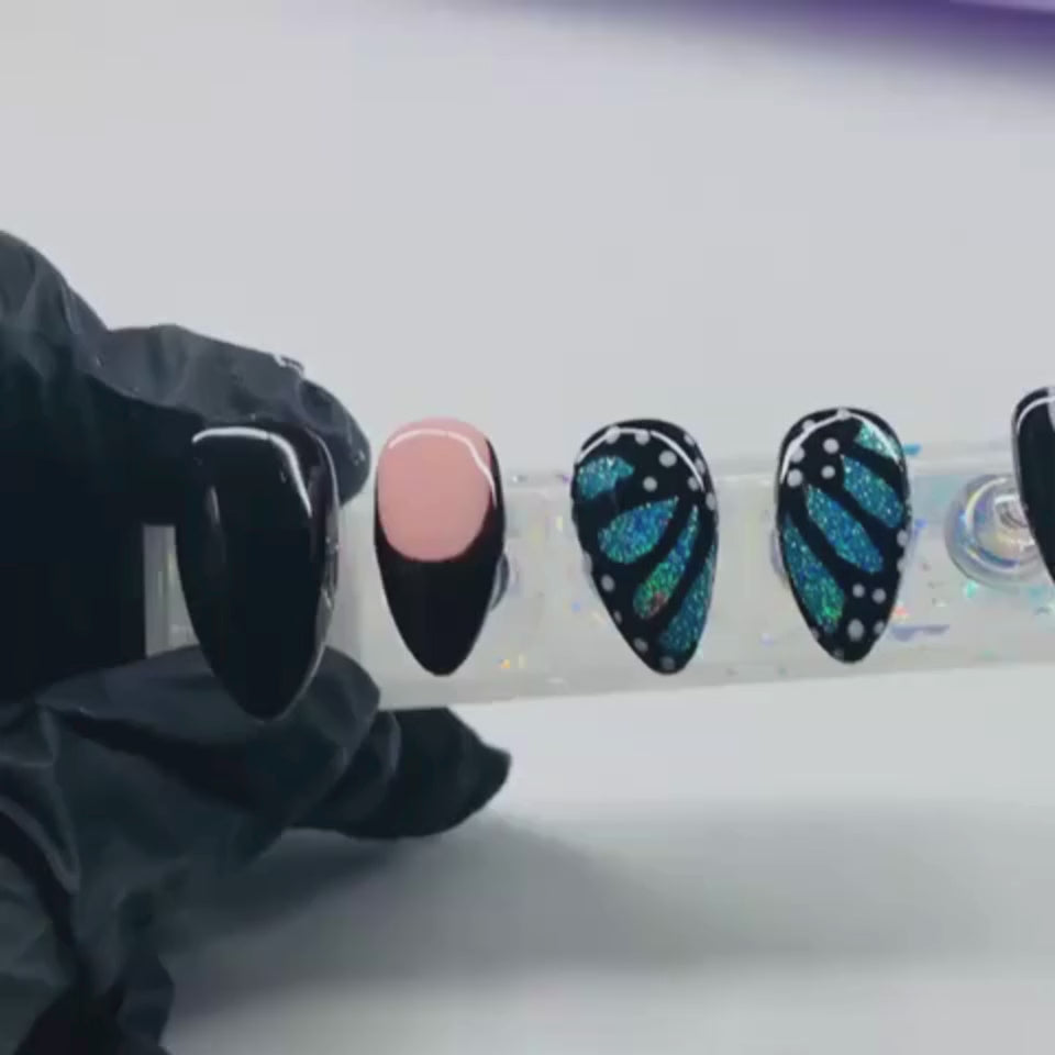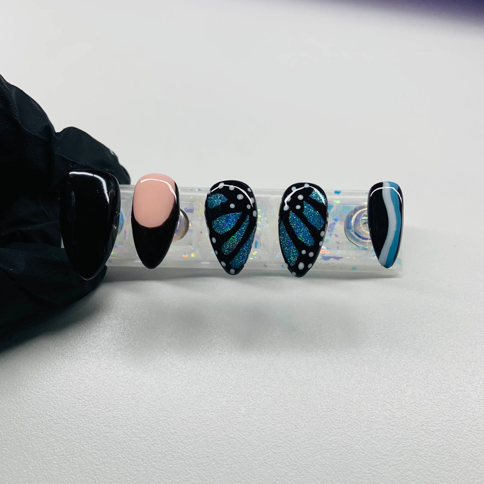 A gorgeous set of wings with this Blue Monarch Butterfly Press-On Nail Set. This handcrafted design brings that fluttery and free feeling.